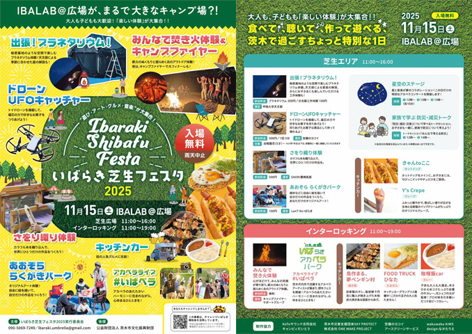 2025年11月15日(土)、IBALAB@広場にて「いばらき芝生フェスタ2025」を開催いたします。本イベントは「食べて・聴いて・作って・遊べる」をテーマに、地域の方々に向けた体験型イベントです。大人から子どもまで幅広い世代が一緒に楽しめるコンテンツを多数ご用意しました。