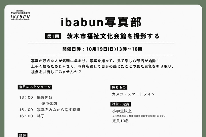 ibabun写真部 「茨木市福祉文化会館を撮影する」茨木市文化振興財団が新しく「部活」を発足!